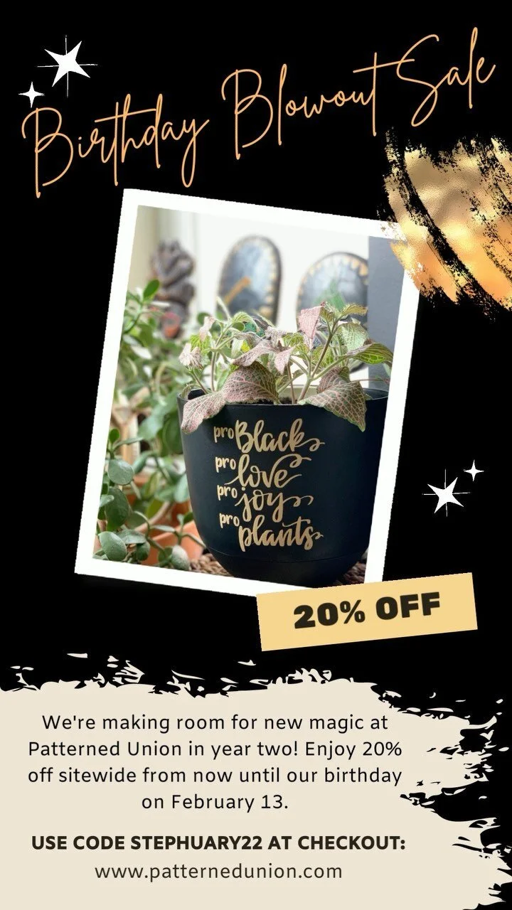Patterned Union is the realization of childhood dreams I didn’t even know I had. Years of doodles, experimenting with and perfecting my handwriting, copying and recopying notes for school not to deepen my understanding of the material but to play around with different fonts and colors prepared me for such a time as this. I give thanks for the power of words to create new realities. I give thanks to God and my ancestors for my talent and the wisdom that this gift is worthless if I do not share it with the world. I give thanks for you and I can’t wait to create magic for you.
